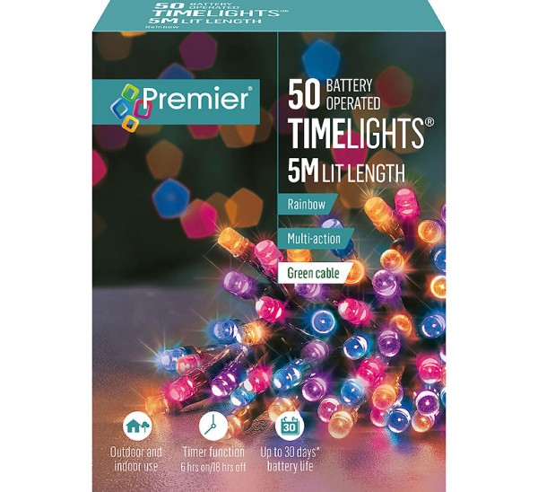 • 50 Multi-Action Battery Operated Rainbow LEDs Lights