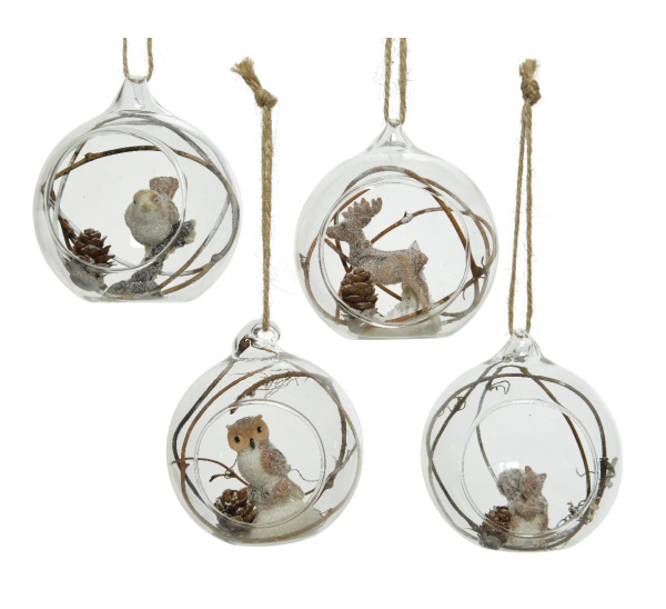 Tags: Bauble glass animal inside, pinecone, branches brown