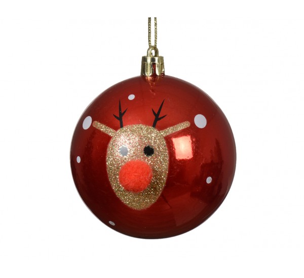 • Bauble shatterproof shiny glitter deer red/gold
