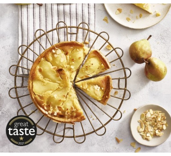 Soft pears and ginger in a classic frangipane tart, finished with flaked almonds. Delicious hot or cold.