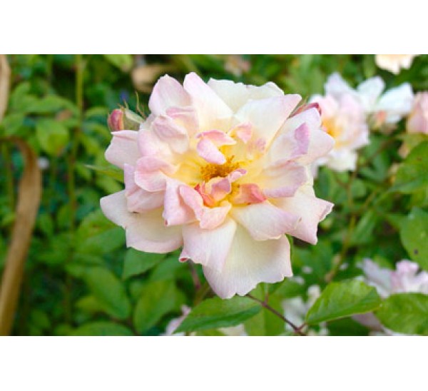 Dainty, pale yellow flushed salmon pink flowers held in clusters on good light green folaige. Repeat flowering, nicely scented.
