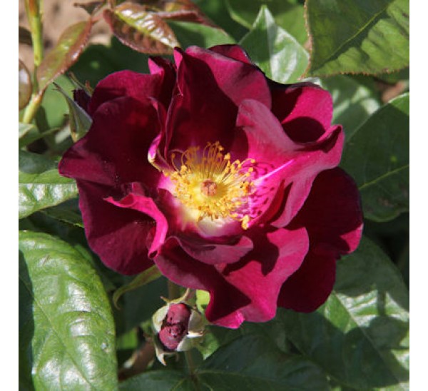 A fabulous and versatile floribunda rose which looks sure to be popular. Semi double blooms of dark purple with very prominent yellow stamens. CLICK AND COLLECT or LOCAL DELIVERY ONLY