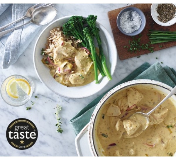 Chicken Breast (40%), Water, Crème Fraiche [Milk], White Wine (7%) [Sulphites], Semi Skimmed Milk, Single Cream [Milk], Leeks (4%), Red Onions (4%), Roast Chicken Glace (Roast Chicken, Concentrated Broth from Chicken Meat (Water, Extract), Maltodextrin (Potato), Yeast Extract, Salt, Glucose, Onion Powder), Dijon Mustard (3%) (Water, Mustard Seeds, Vinegar, Salt), Wholegrain Mustard (2%) (Water, Mustard Seeds, Vinegar, Salt), Cornflour, Rapeseed Oil, Lemon Juice Concentrate [Sulphites], Red Wine Vinegar [Sulphites], Salted Butter [Milk], Thyme.