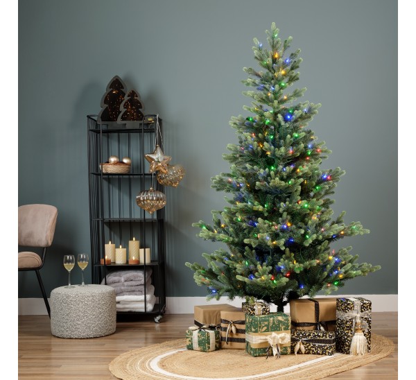 The stunning Geneva Fir Pre-Lit Artificial Tree is the perfect addition to your home this Christmas. Featuring advanced LED light technology, you can switch between warm white or multi-coloured lights to match your festive mood. Its compact size and vibrant LED lights make it ideal for adding holiday cheer to any room. Just plug it in and enjoy the magical light display!