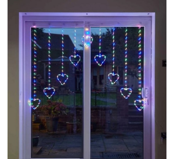 Bring a touch of magic to your home with these heart shaped curtain lights. Ideal for decorating windows, doorways, or walls, these enchanting lights feature a beautiful heart-shaped design. Whether you’re creating a romantic ambiance, spreading holiday cheer, or simply adding a bit of sparkle to your day, these lights add warmth and charm to any indoor or sheltered outdoor setting.