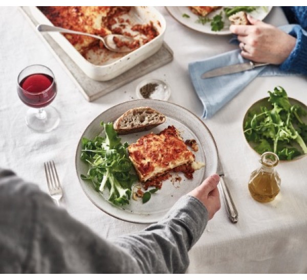 A slow-cooked ragu of beef and pork layered between sheets of Italian pasta, with béchamel sauce and a West Country Cheddar topping.