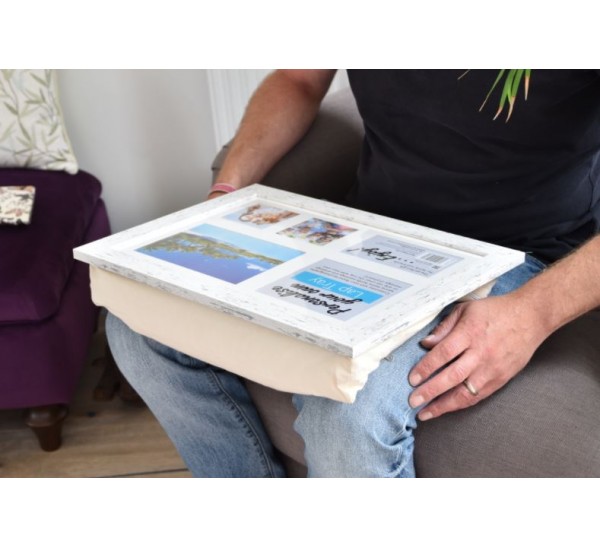 Neat Ideas Personalise Your Own Lap Tray – a great Christmas present! This unique tray can be personalised with your own photographs, sports teams, bands, paintings and drawings or why not cover with a montage of photos? Simply unzip the back, remove the beaded cushion and insert your photos.