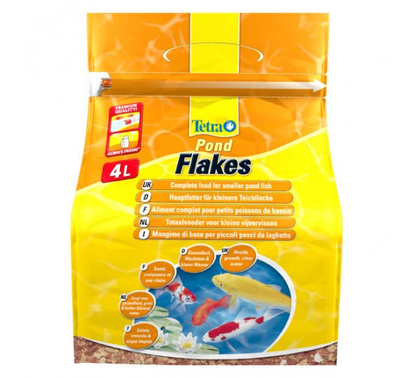 Tetra Pond Flakes are a complete food for all small pond fish. Flake mixture comprising four types of flake for a varied balanced and healthy diet. The red flakes with their high protein content promote growth and vitality. The yellow flakes contain a high proportion of vitamins and minerals and prevent deficiency symptoms.The brown flakes provide the fish with healthy plant nutrient. The white fibre flakes promote digestion. The high-quality resealable plastic bag protects the food from harmful effects such as sunlight air and dampness. This means important ingredients are protected and the food is kept fresh making sure your fish get the best possible nutrition.